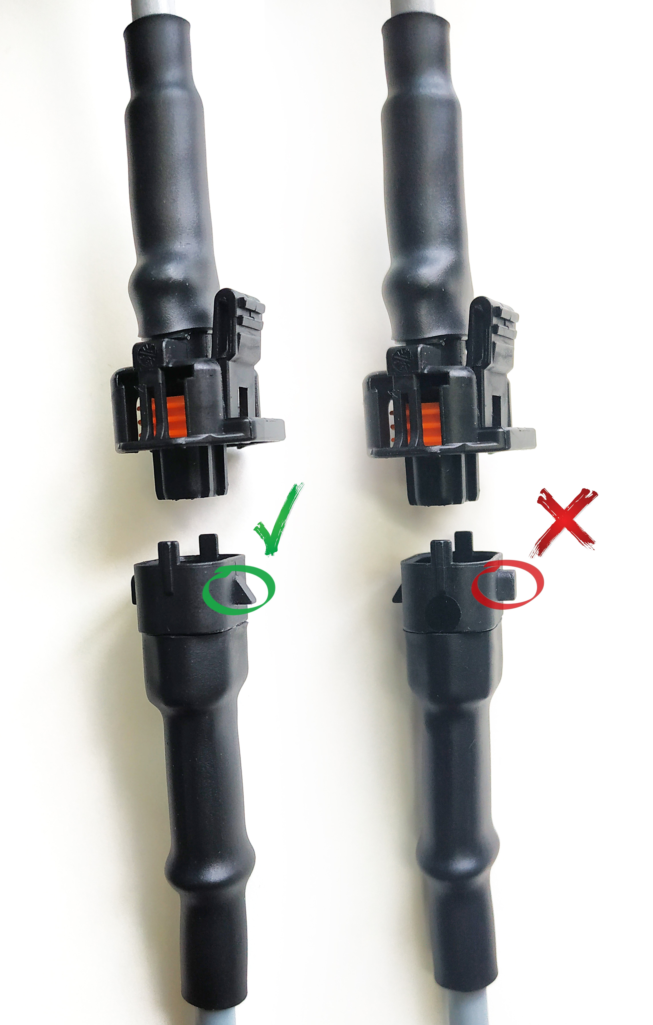 Кабель переходник на форсунку имеет составную часть, которая должна соединятся именно как на рисунке: