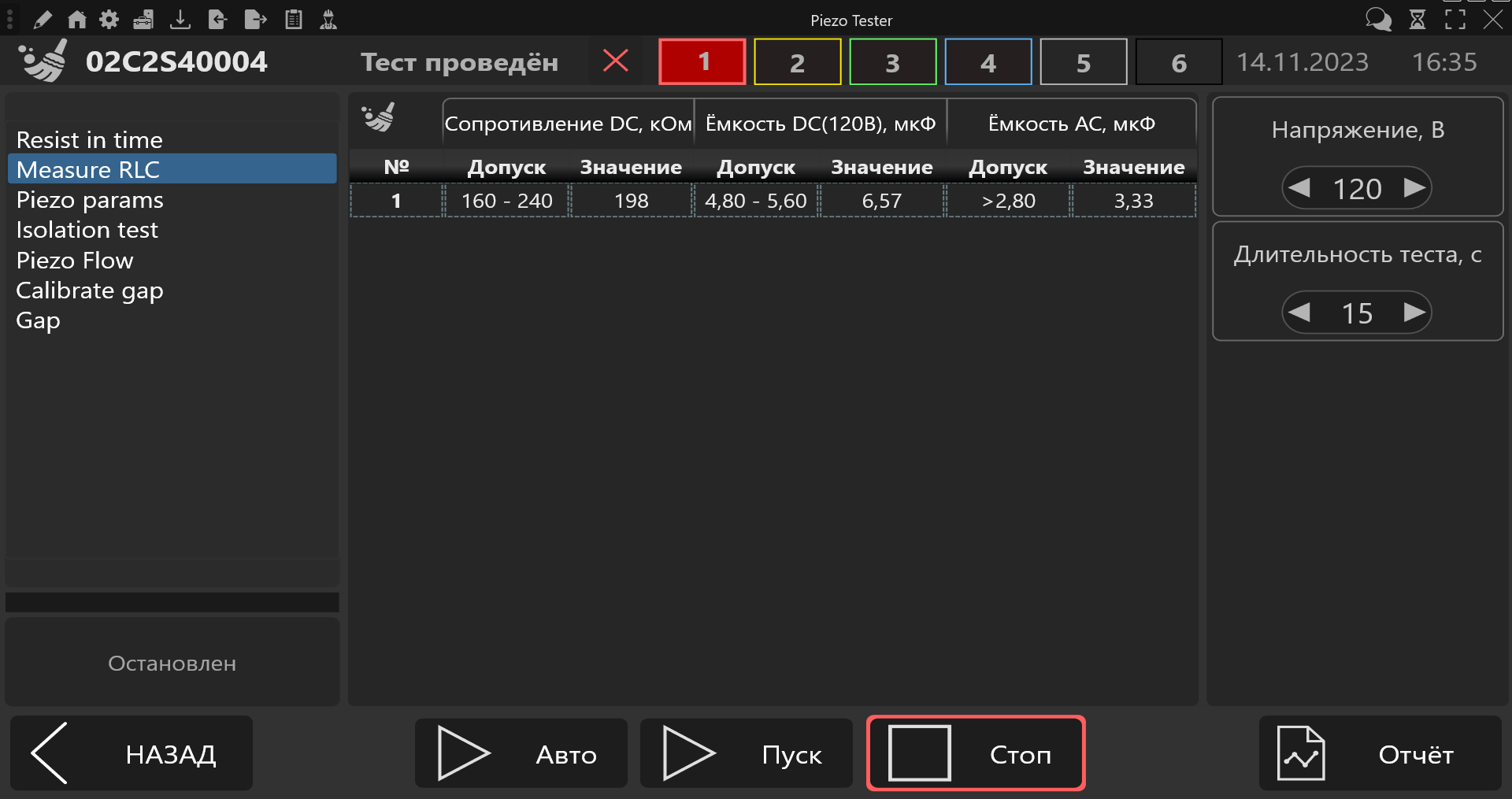 - измерение сопротивления и емкости пьезопакетов на переменном напряжении (согласно требованиям изготовителей пьезоинжекторов) и на предварительно заряженном пьзопакете (20-130В);