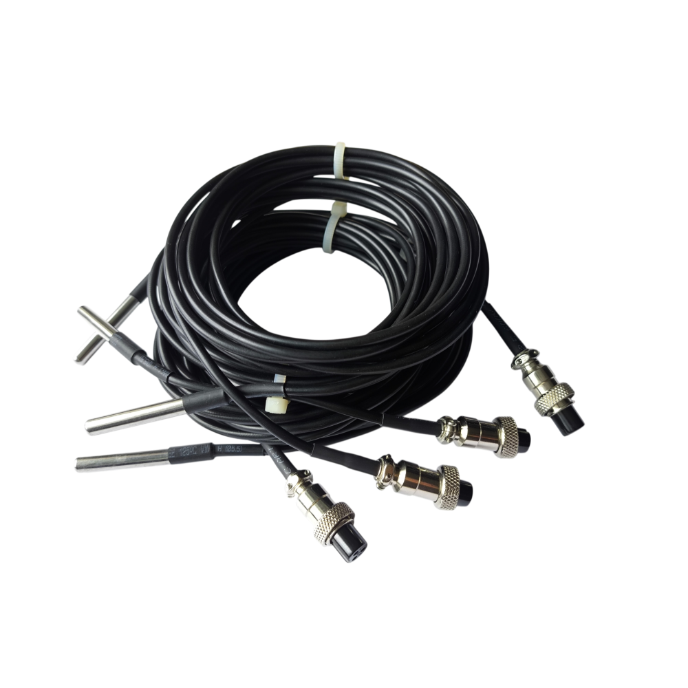 Устройство комплектуется четырьмя дополнительными датчиками температуры. Длина кабеля подключения датчика - три метра.